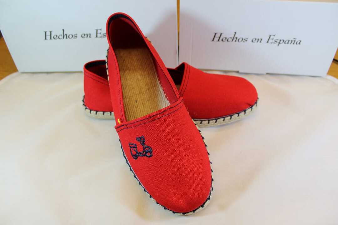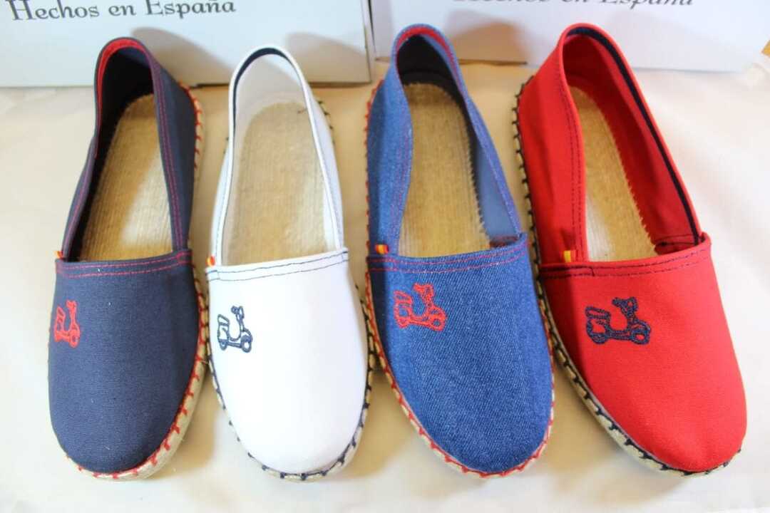 Alpargatas de tela piqué con bordado vespa Ridebike, sin cordones.