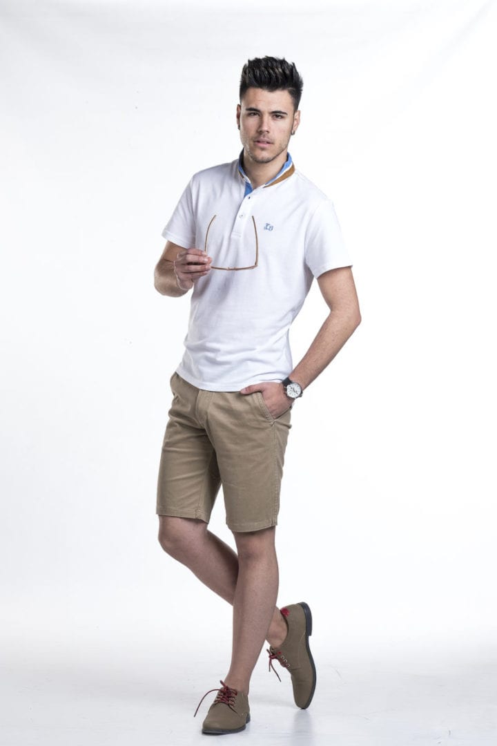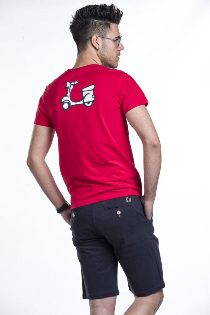 Bermuda de caballero. Tiene dos bolsillos chinos laterales y 2 bolsillos traseros con botón personalizado Ridebike. Cierre frontal con cremallera y botón. Algodón 100%. Detalle bordado de vespa encima del bolsillo trasero.