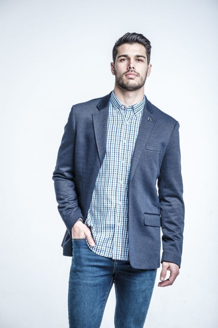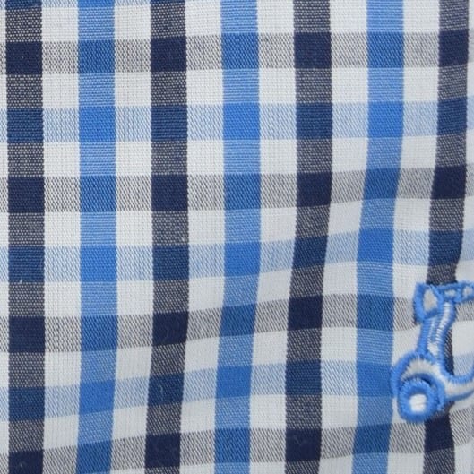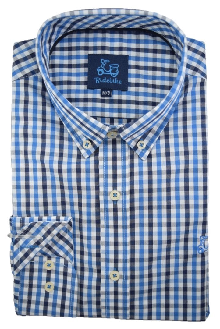 Camisa de cuadros azul y marino. Manga larga. Compuesta de 65% algodón y corte semientallado. Cuello con botones.