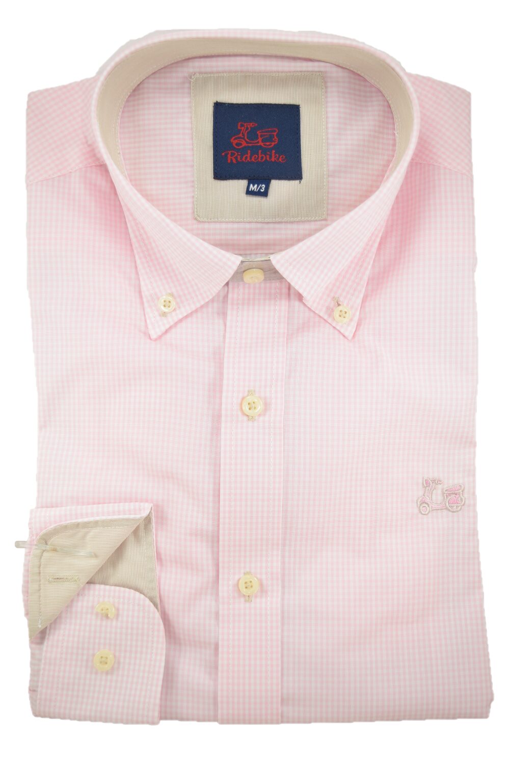Camisa de cuadros. Manga larga. Compuesta de 65% algodón y corte semientallado. Cuello con botones.