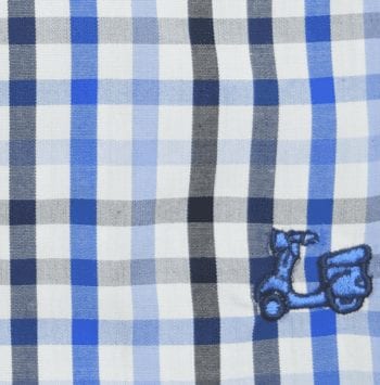 Camisa de cuadros en tonalidades azul. Compuesta de 65% algodón. Manga larga. Corte semientallado. Cuello con botón y el puño con cierre de dos botones.