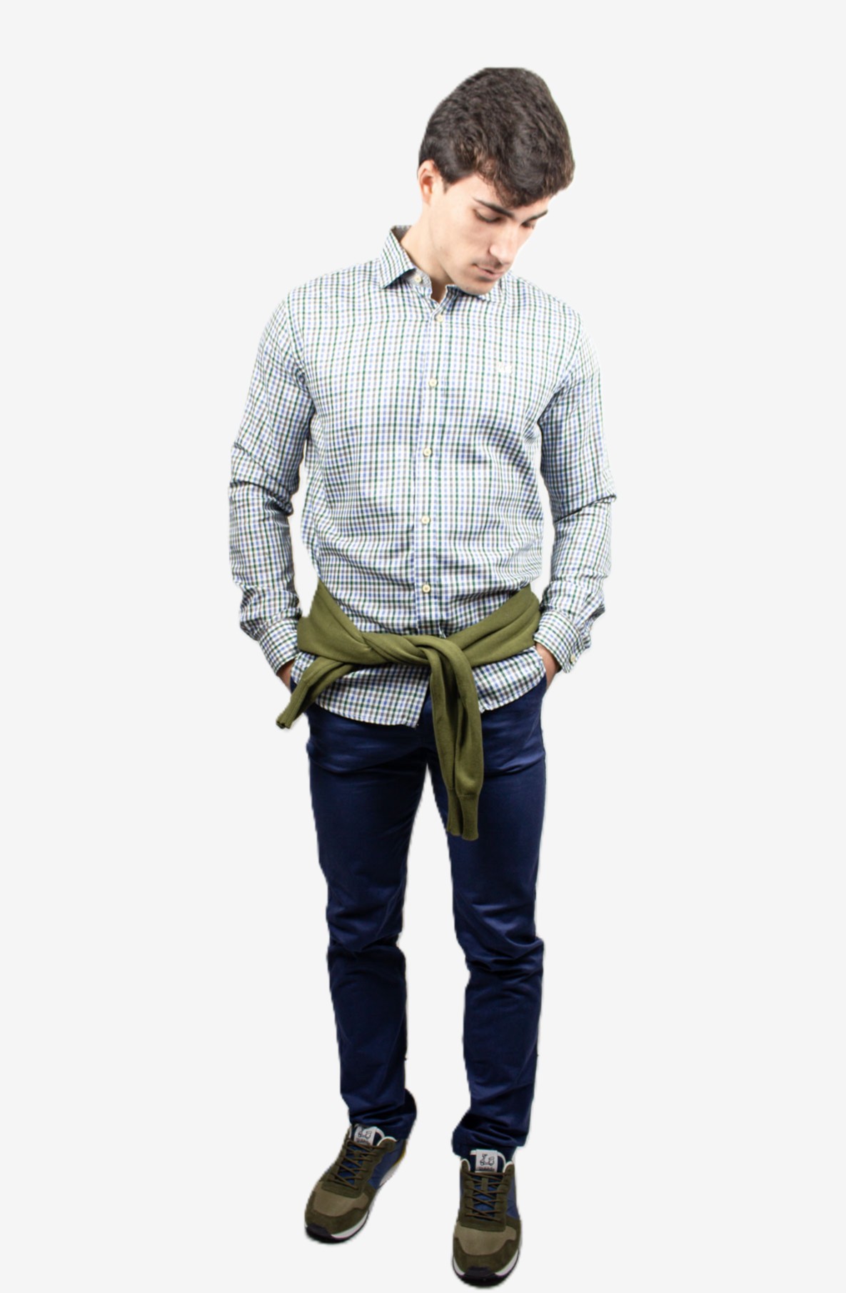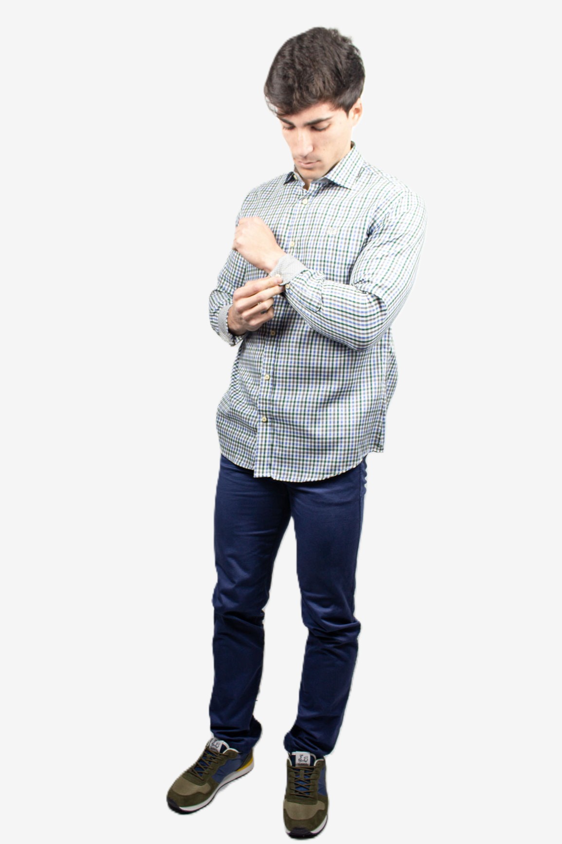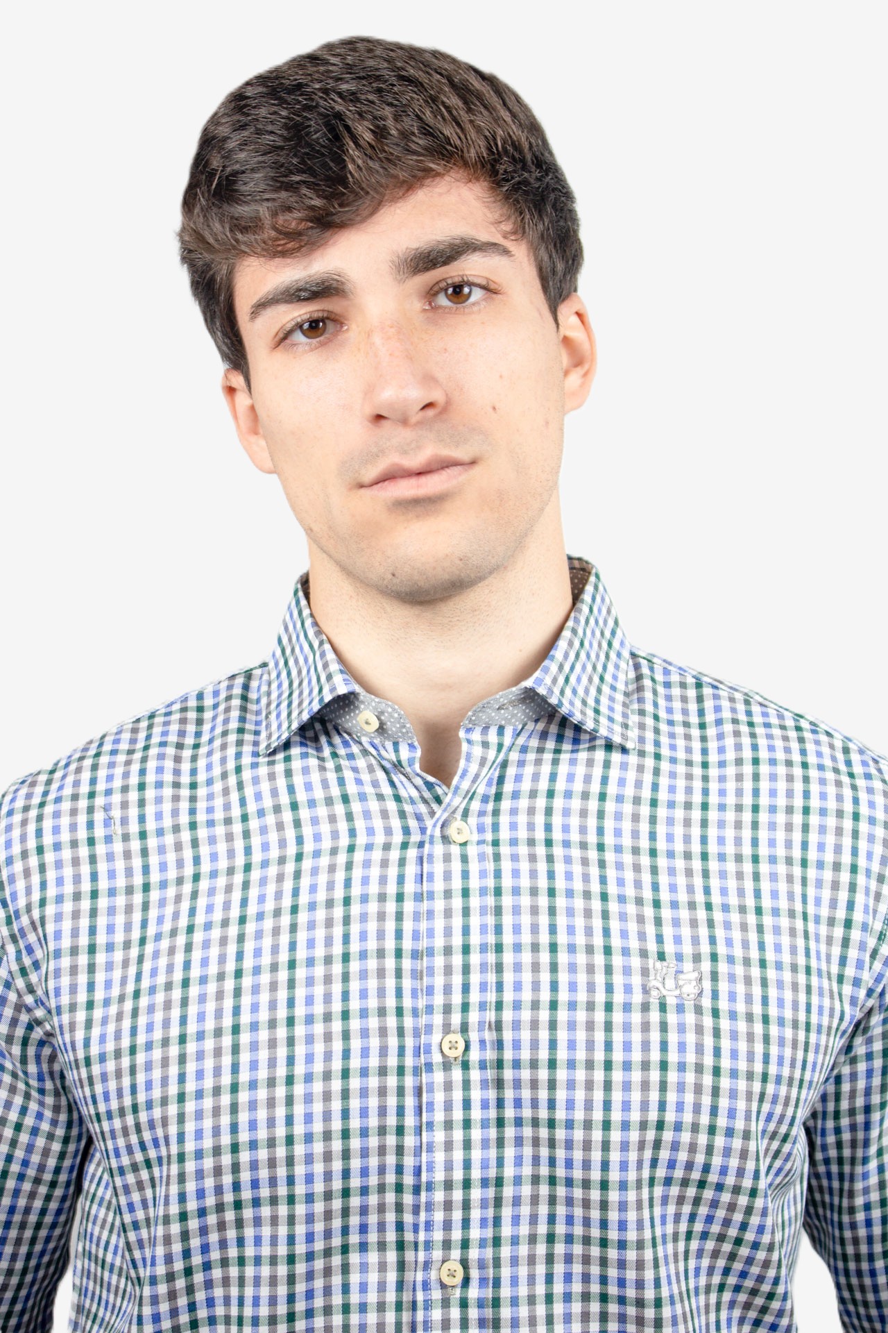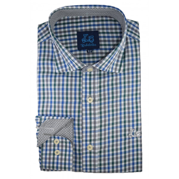 Camisa de cuadros Vichy color verde, gris y azul. Compuesta de mezcla de algodón de corte Regular fit.