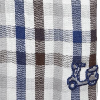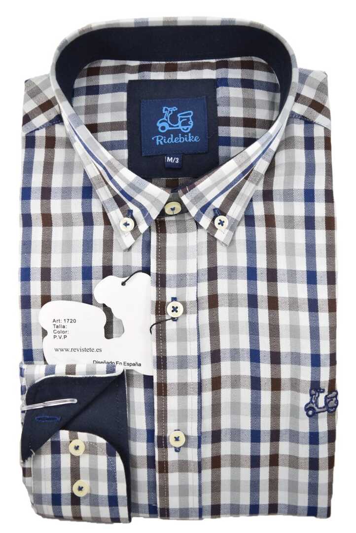 Camisa de cuadros. Compuesta de 65% algodón. Tejido viyela. Manga larga. Corte semientallado. Cuello con botón y el puño con cierre de dos botones.