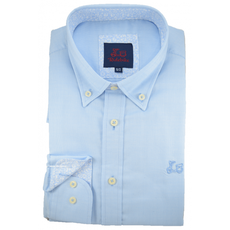 Camisa celeste clásica. Manga Larga. Compuesta de 65% algodón y corte semientallado. Cuello con botón.