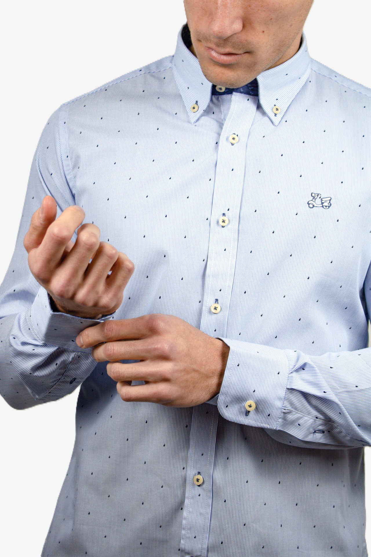 Camisa milrayas azul con estampados cachemir. Compuesta de mezcla de algodón de corte Regular fit.