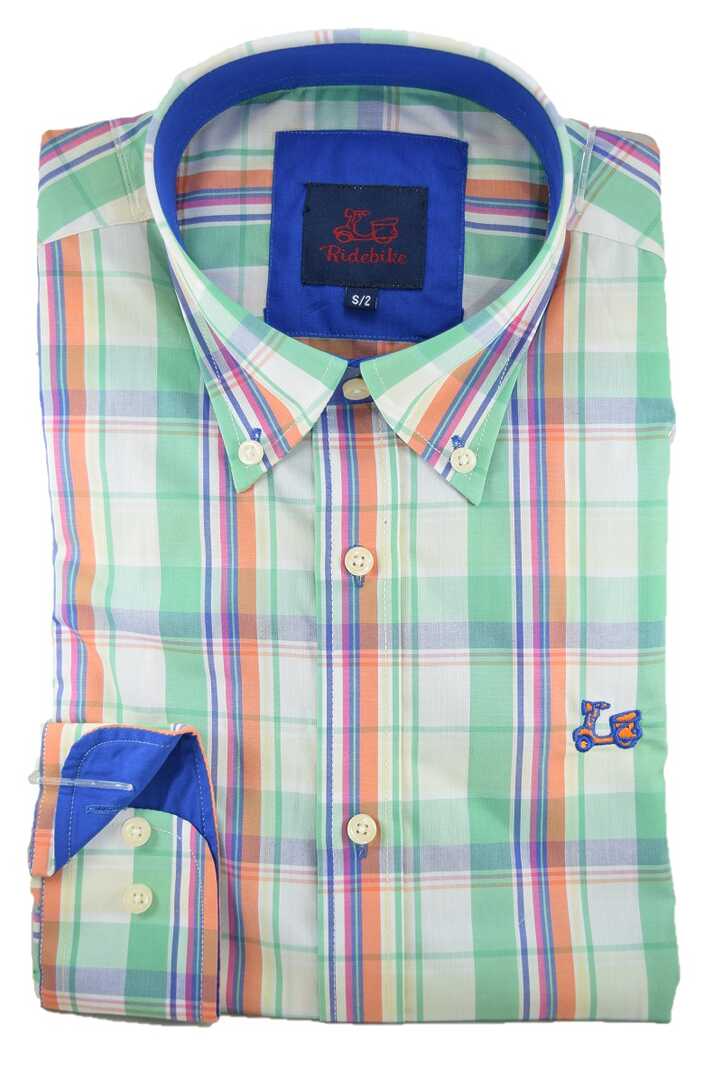 Camisa de cuadros verde para niños. Compuesta de 65% algodón. Manga larga. Cuello con botón y el puño con cierre de dos botones.