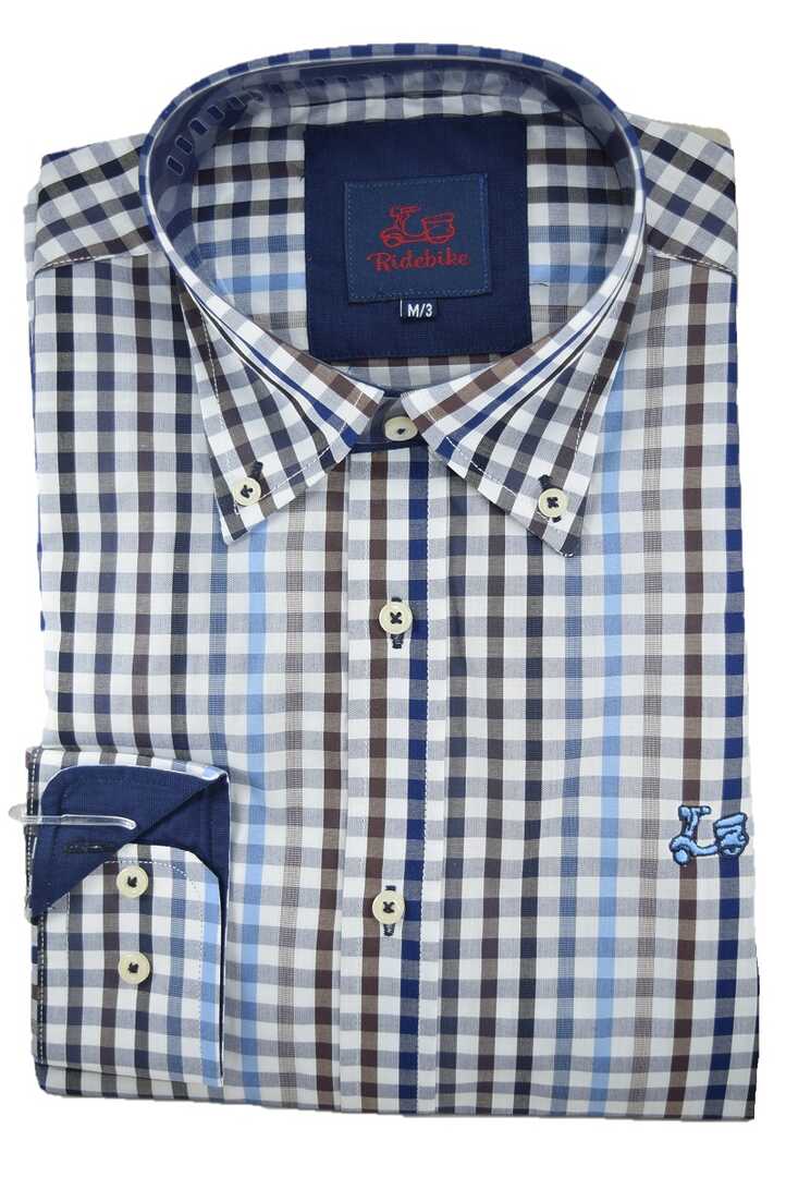 Camisa para niños de cuadros. Compuesta de 65% algodón. Manga larga. Cuello con botón y el puño con cierre de dos botones.