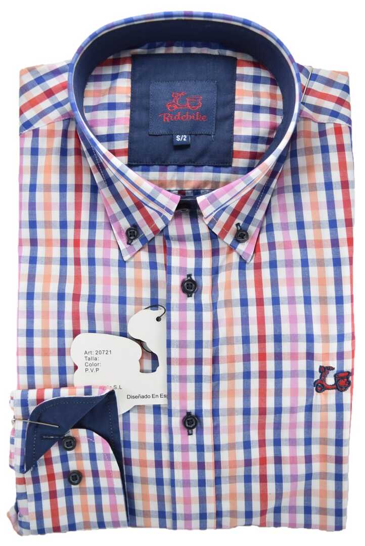 Camisa para niños de cuadros. Compuesta de 65% algodón. Manga larga. Cuello con botón y el puño con cierre de dos botones.