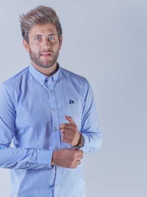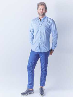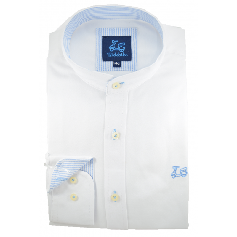 Camisa de niño Oxford blanco. Compuesta de 65% algodón. Manga larga. Cuello mao.