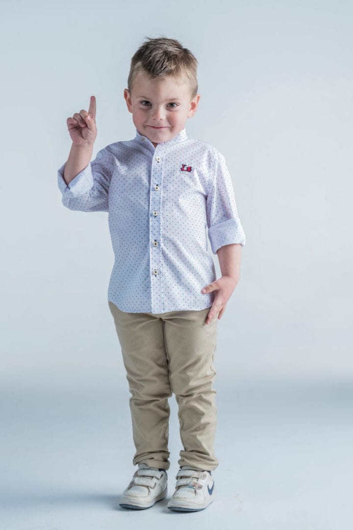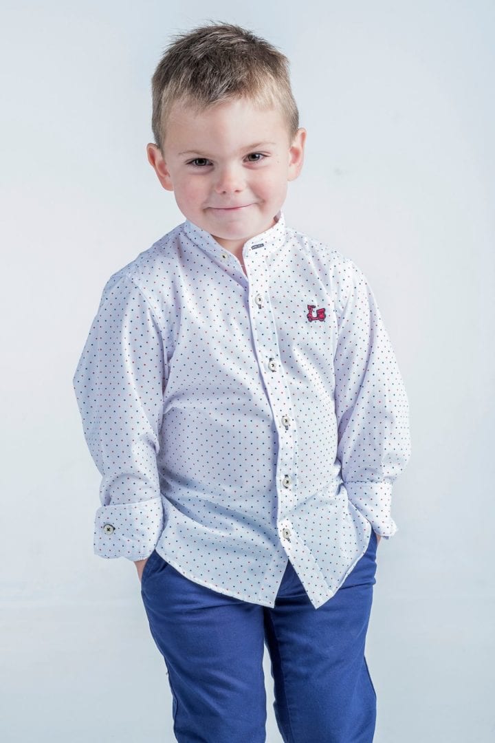 Camisa niño de topitos cuello mao