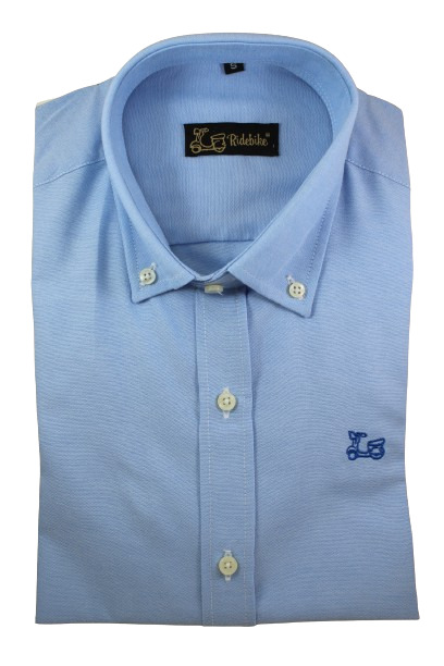 Camisa Oxford Liso Celeste Ridebike. Manga Larga. Compuesta de 65% algodón y corte semientallado. Cuello con botón. Fabricación nacional.