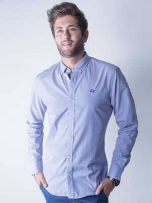 Camisa rayas popelín celeste confeccionada en 100% algodón de corte Regular fit. Presenta cuello button down. Manga larga con puño de cierre con botones. Bordado del logotipo Ridebike en pecho.