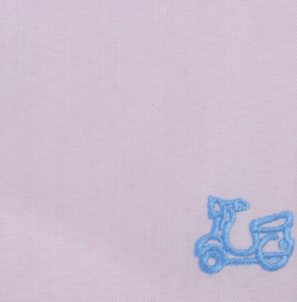 Camisa lisa rosa. Combinación celeste en interior de puño y cuello. Corte semientallado. Manga larga. Logotipo de vespita bordado en pecho. Cuello con botón y el puño con cierre de dos botones.
