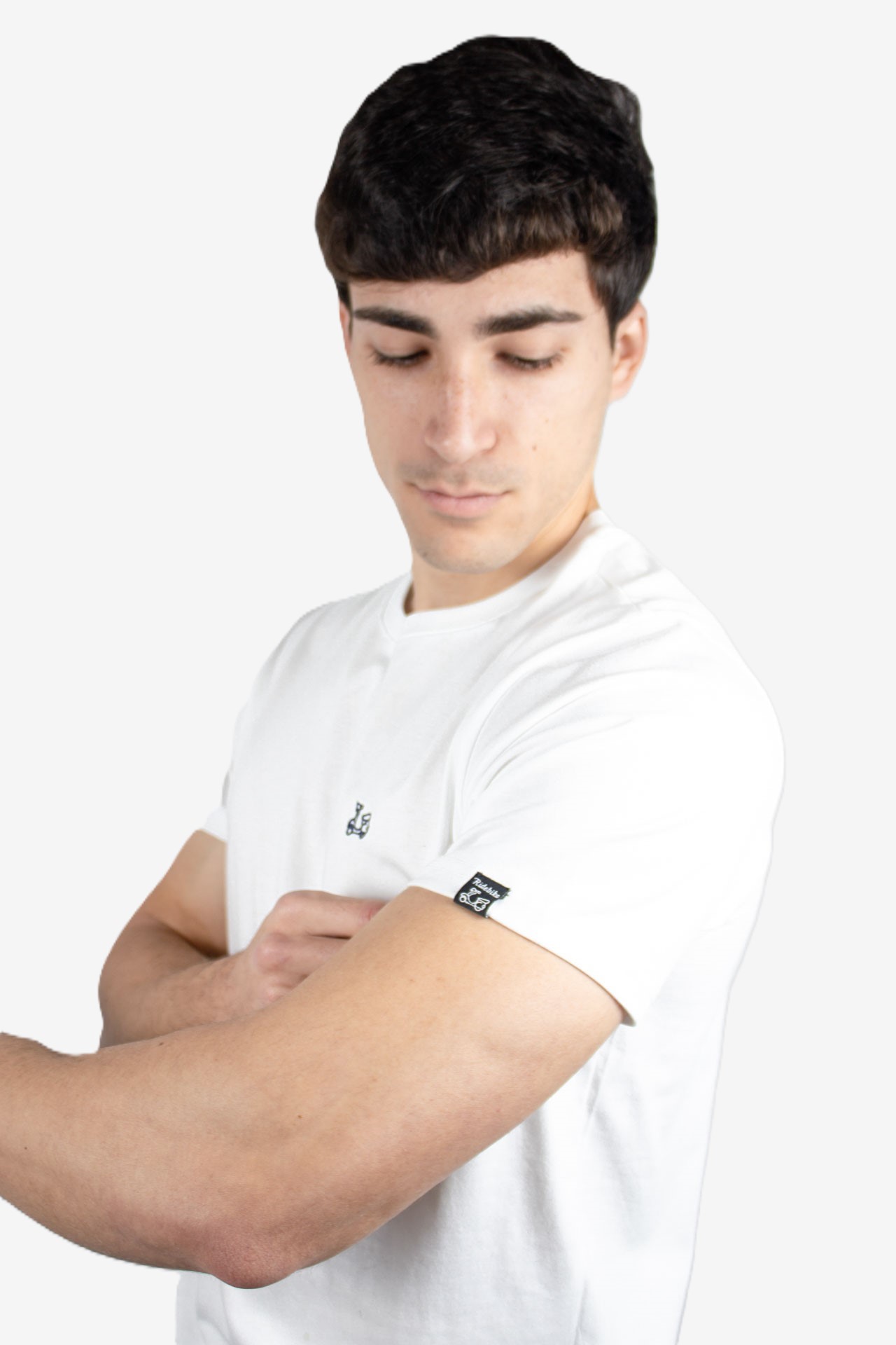 Camiseta básica confeccionada en 100% algodón. Presenta cuello redondo y manga corta. Cuenta con un bordado del logo moto Ridebike en el pecho.
