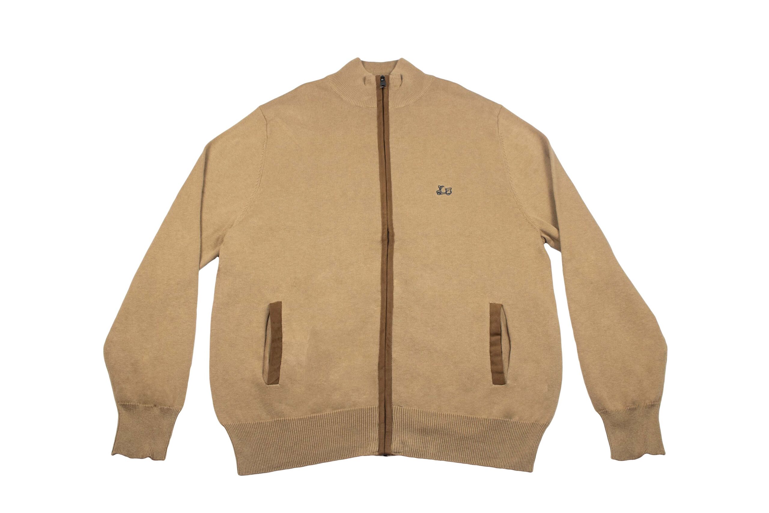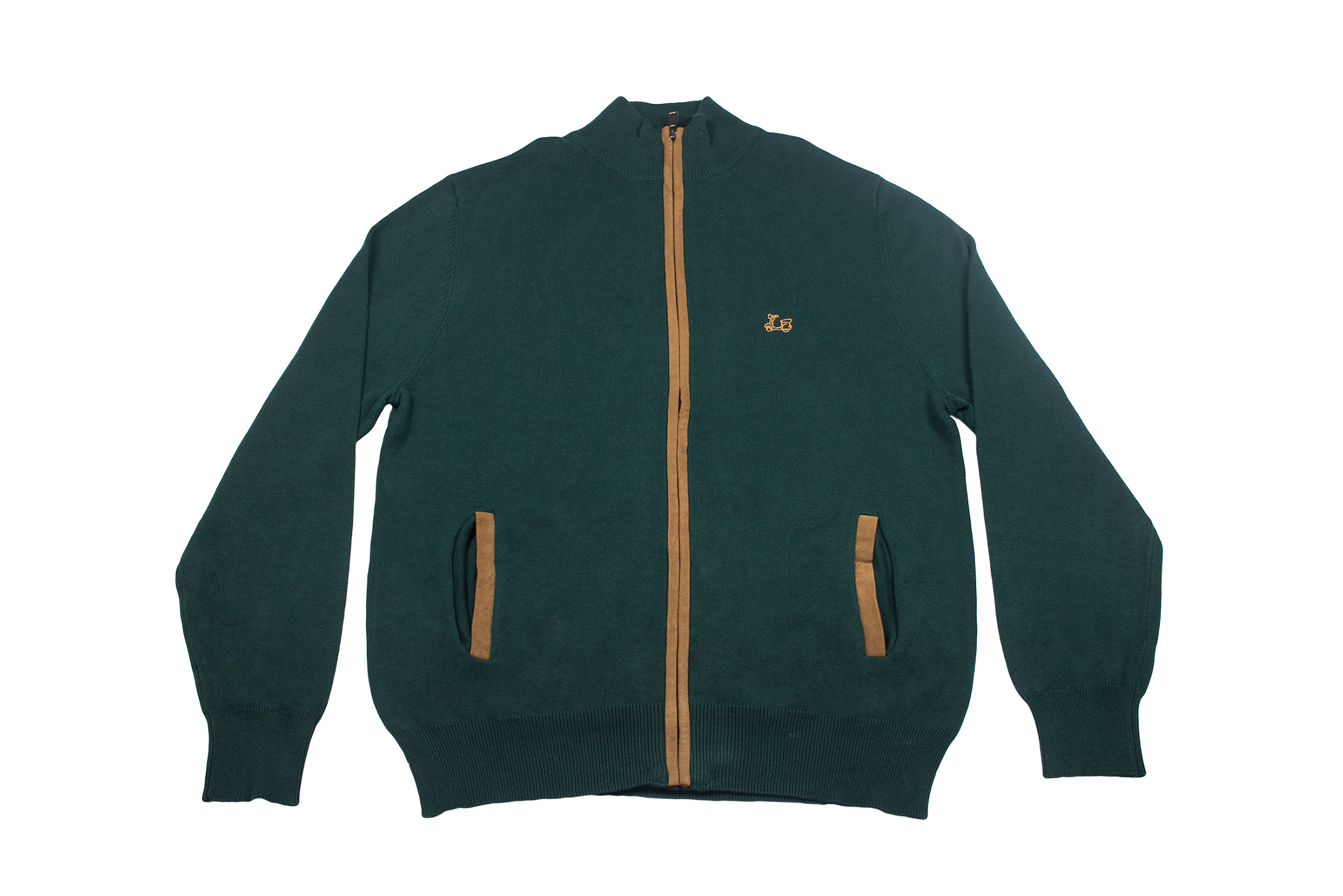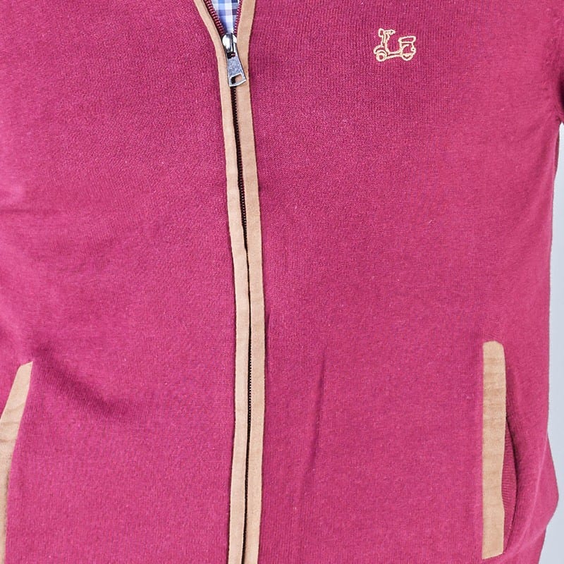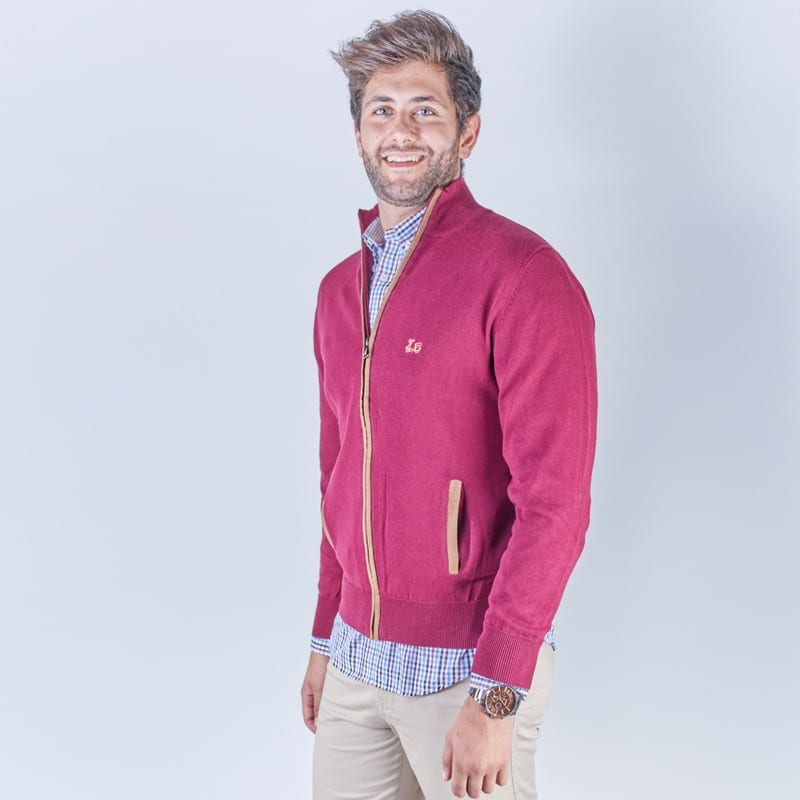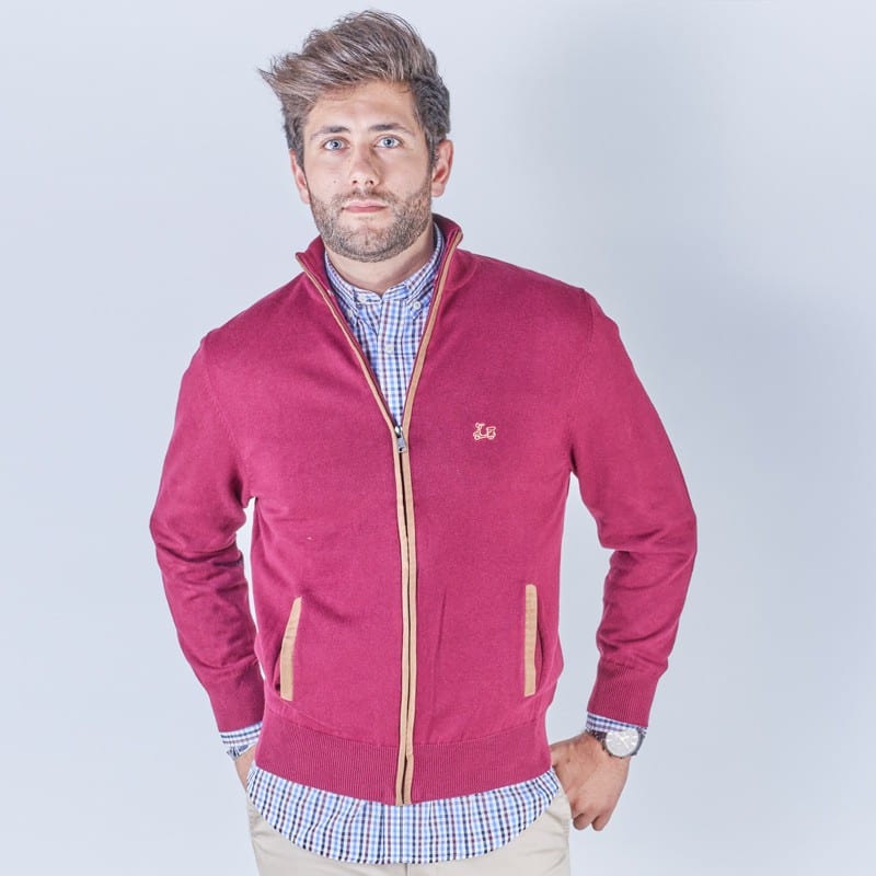 Cárdigan de hombre con cierre de cremallera frontal confeccionado en 100% algodón. Dispone de bolsillos laterales con ante a contraste y cuello alto. Cuenta con acabados en canalé en puños y cintura.