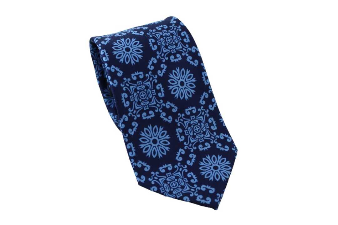 Corbata en color azul oscuro con estampado diseño mosaico.