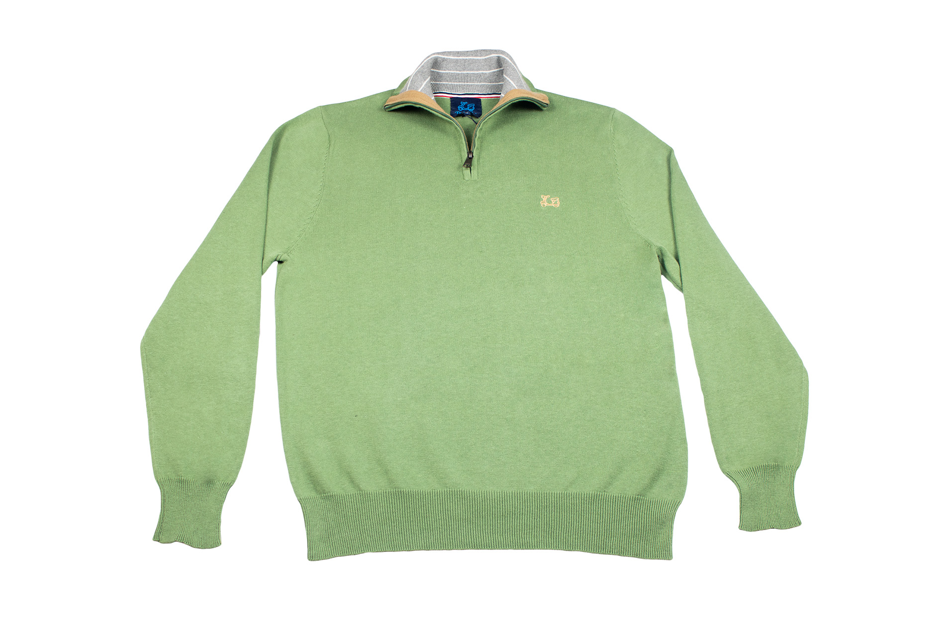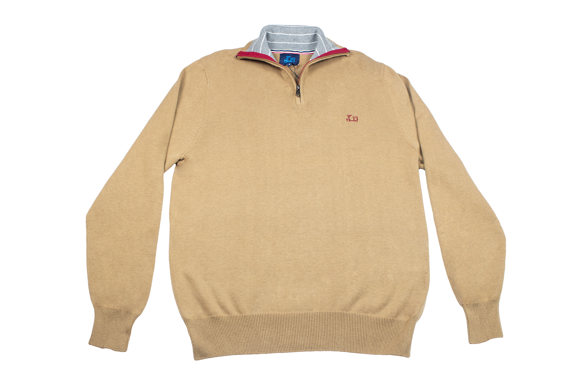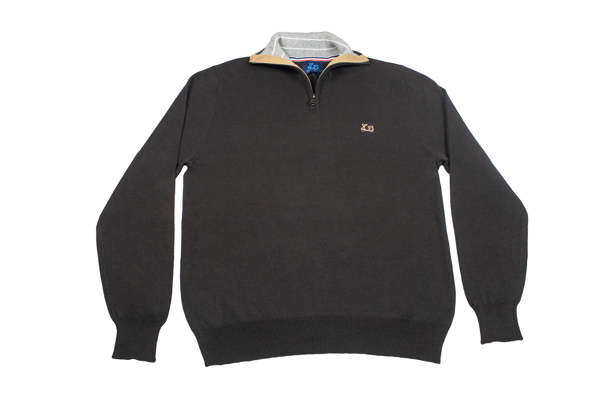Jersey básico de cuello con cremallera confeccionado en 100% algodón. Cuenta con un logo de moto Ridebike bordado en el pecho. Presenta cintura y puños con acabados acanalados y terminaciones elásticas.