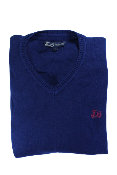 Jersey básico de cuello pico confeccionado en 100% algodón. Cuenta con un logo de moto Ridebike bordado en el pecho. Presenta cintura y puños con acabados acanalados y terminaciones elásticas.