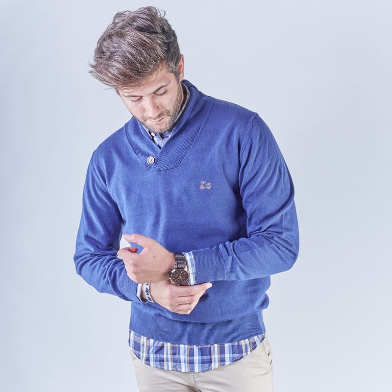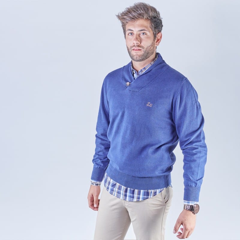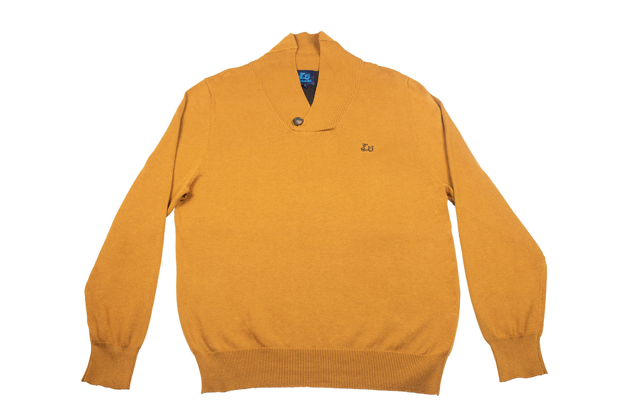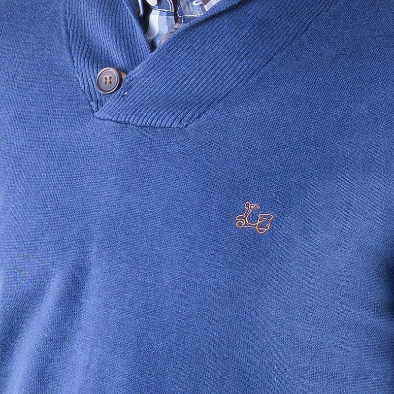 Jersey de punto con cuello esmoquin confeccionado en 100% algodón. Cuenta con un logo de moto Ridebike bordado en el pecho. Presenta cintura y puños con acabados acanalados y terminaciones elásticas.