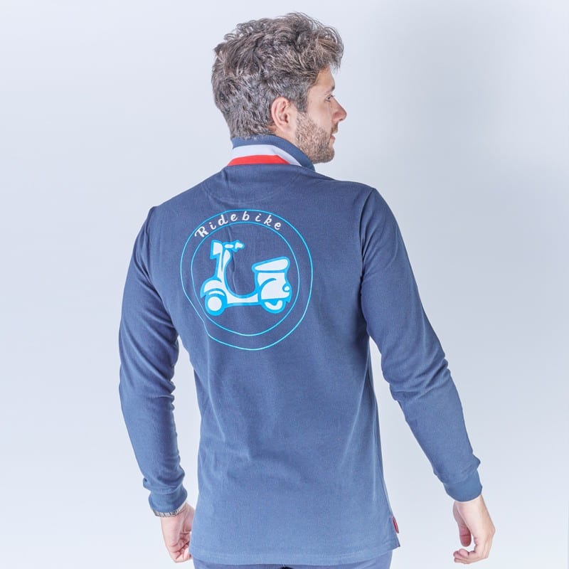 Polo manga larga con logotipo Ridebike estampado en la espalda. Confeccionado con algodón 100%. Cierre de dos botones. Bajo irregular con aberturas laterales.